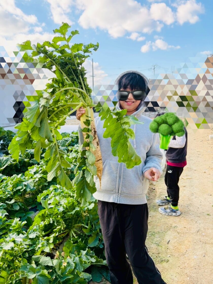 別で育てている野菜の畑にも案内していただくと、ご厚意でまさかの大根抜きをさせていただけることに!!