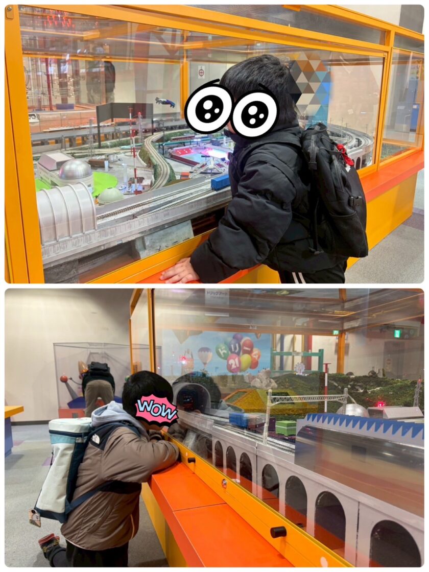 鉄道好きの子は、「ジオラマや!!」と模型のショーケースに興味津々!