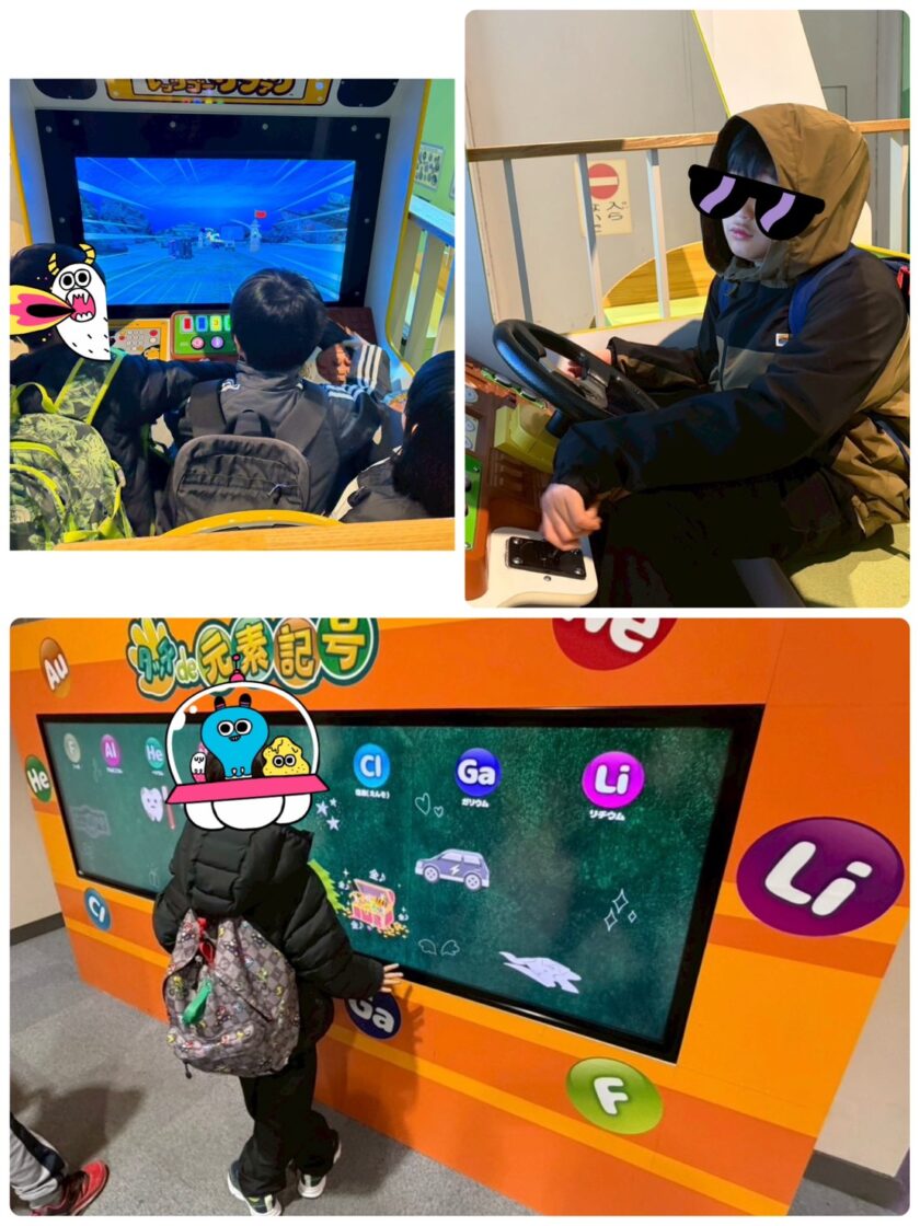 サファリパークの運転シミュレーションも大人気でした!元素記号ゲームに熱中している子も(笑)