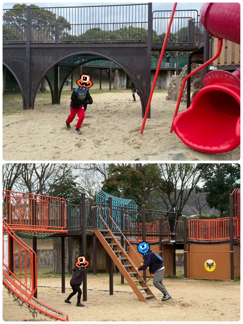 今回は、お城をイメージした大型遊具がある「とりで広場」で思いっきり遊んできました!