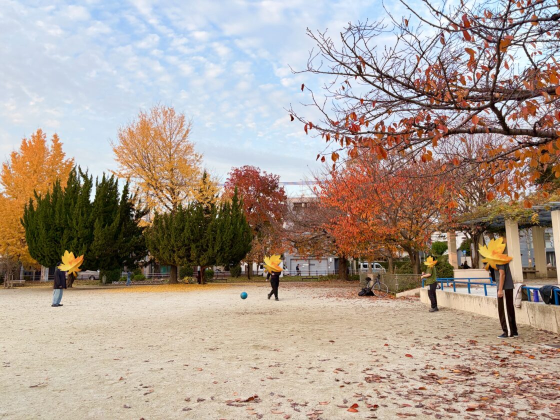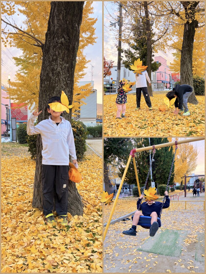 「上から降るイチョウの葉をキャッチしてみよう!」と遊びを入れると盛り上がりました^ ^
