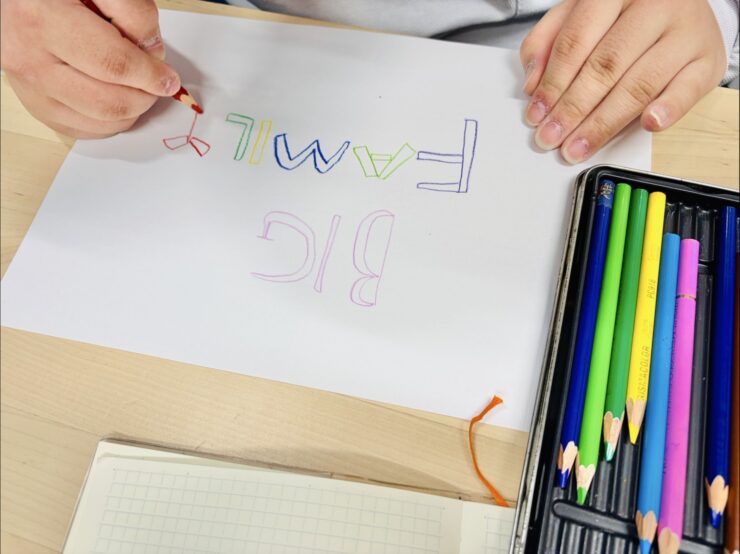 自分の描いた絵や文字がスクリーンに出てくる科学体験では、ニコニコと嬉しそうに描いていました☆