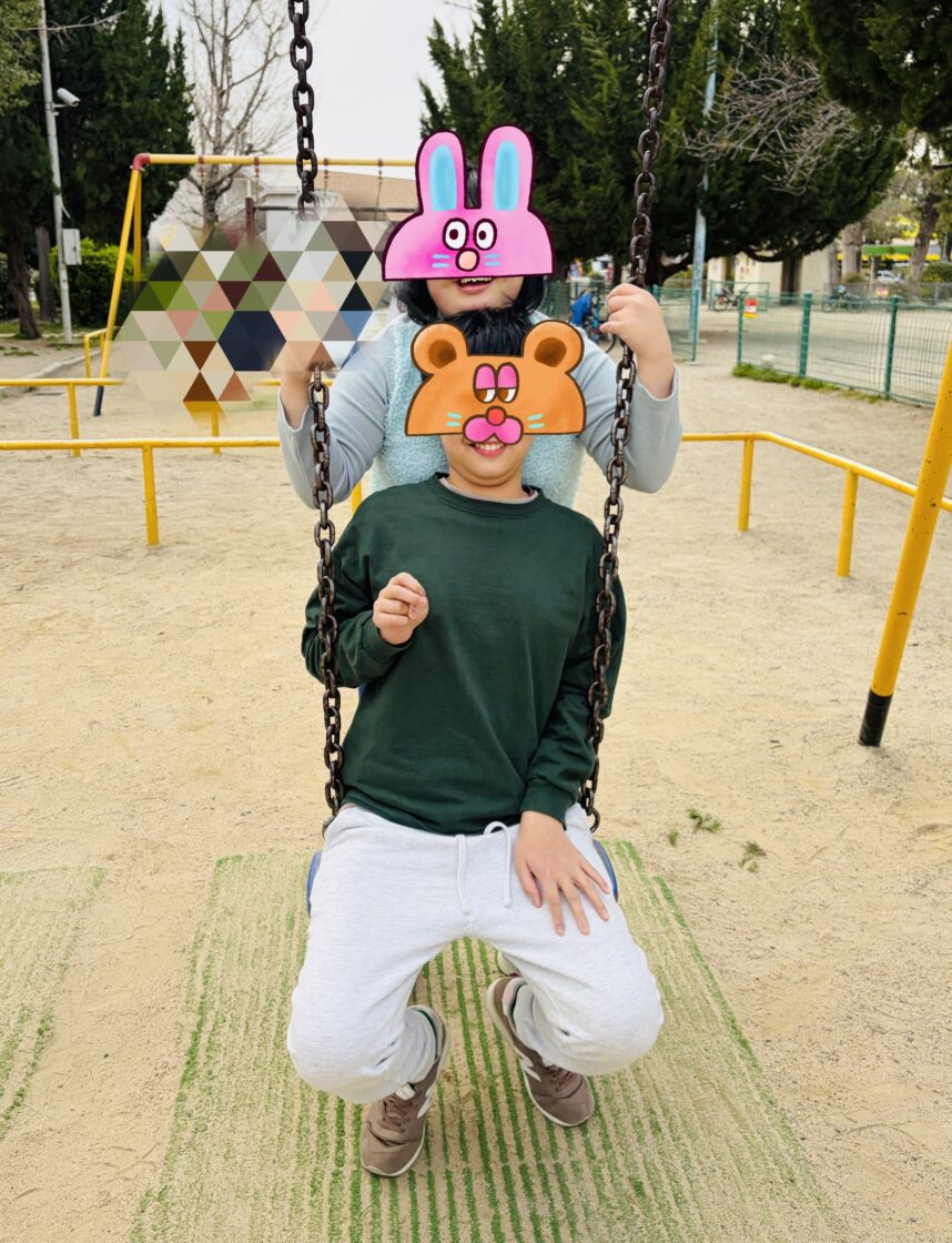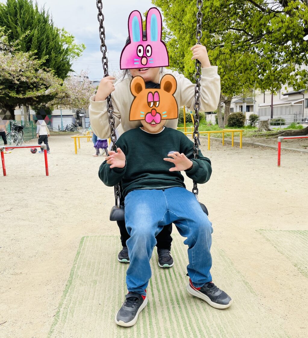 今日は仲良しの2人がブランコを楽しんでいて、桜の時期に撮った2人の写真を思い出したので 「同じポーズで写真とろうよ!」と提案しました!