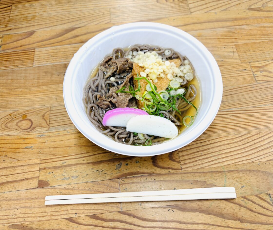 お肉、お揚げ、天かす、ネギ、かまぼこと豪華なお蕎麦です◎